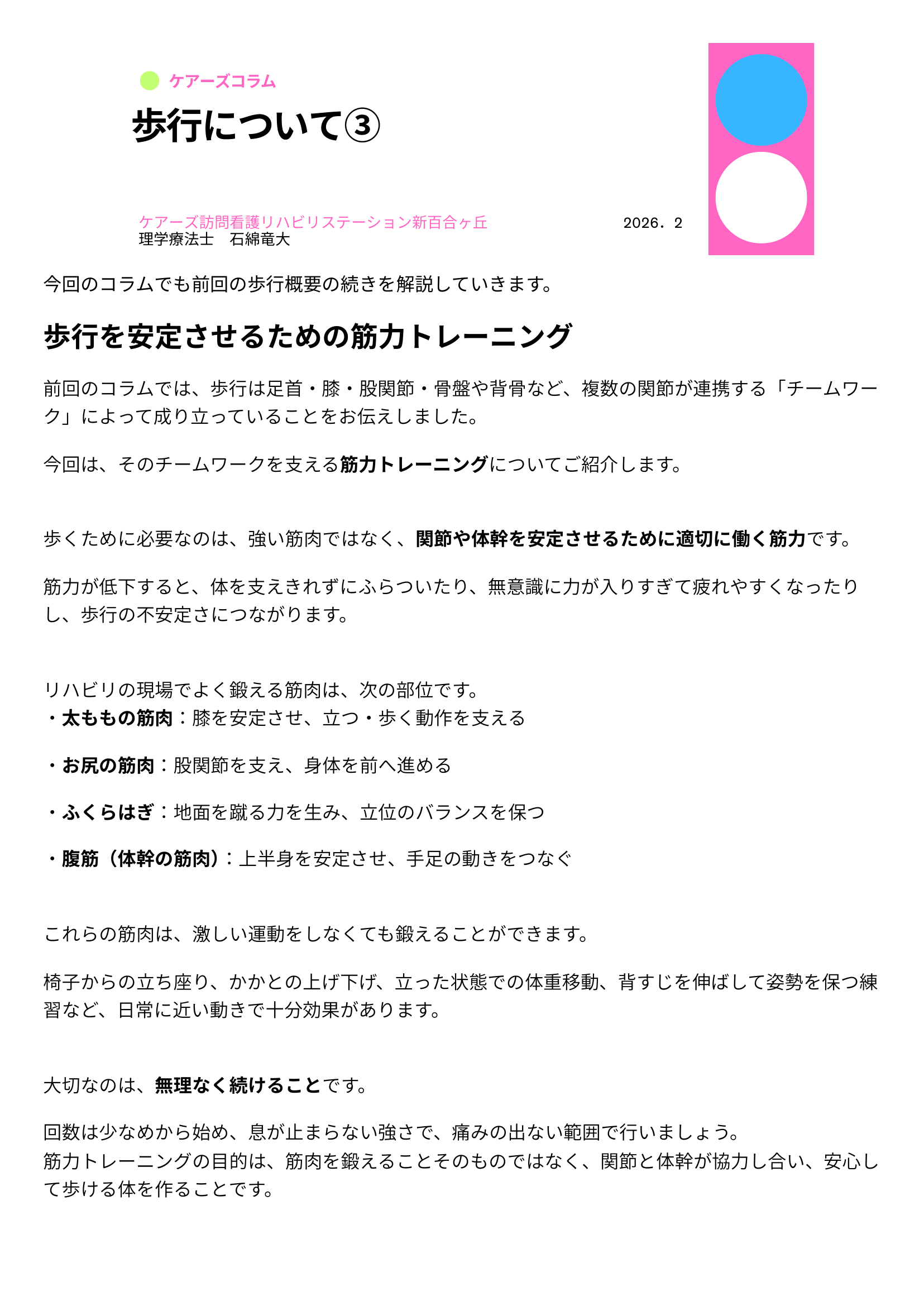 ケアーズコラム 歩行について③